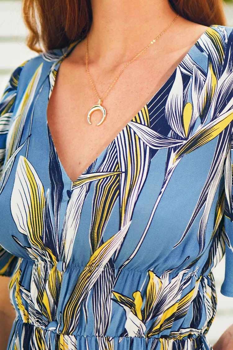 Wrapped in a custom floral print, the Heidi Buttoned V-neck Elastic Waist Dress fully embraces the spirit of summer. V neck and short sleeve,combines with floral pattern for a vintage look, elastic waistband for a comfortable fit and stylish look.