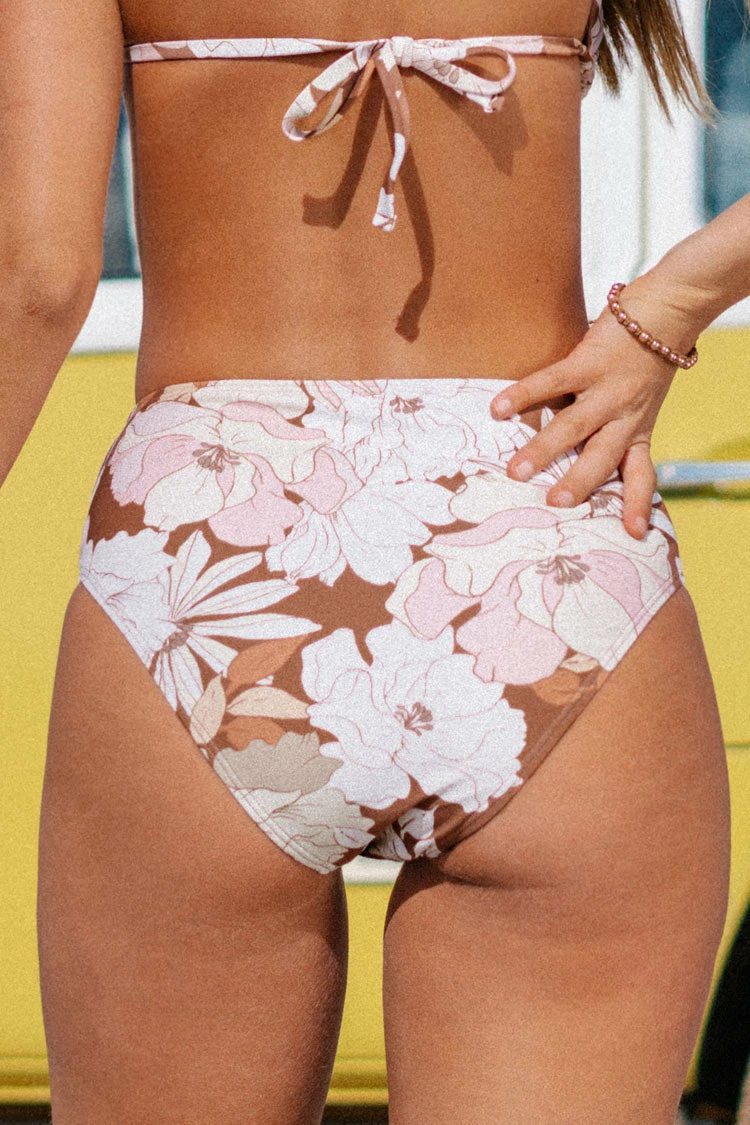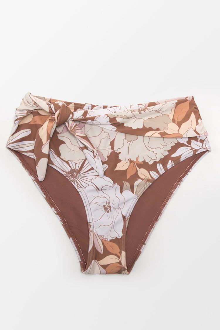 Our Kari Floral High Waisted Tie Bikini Bottom is a must-have addition for your swim collection! The tie waist detail will add more support for you. High waisted bottom for a flattering tummy coverage.