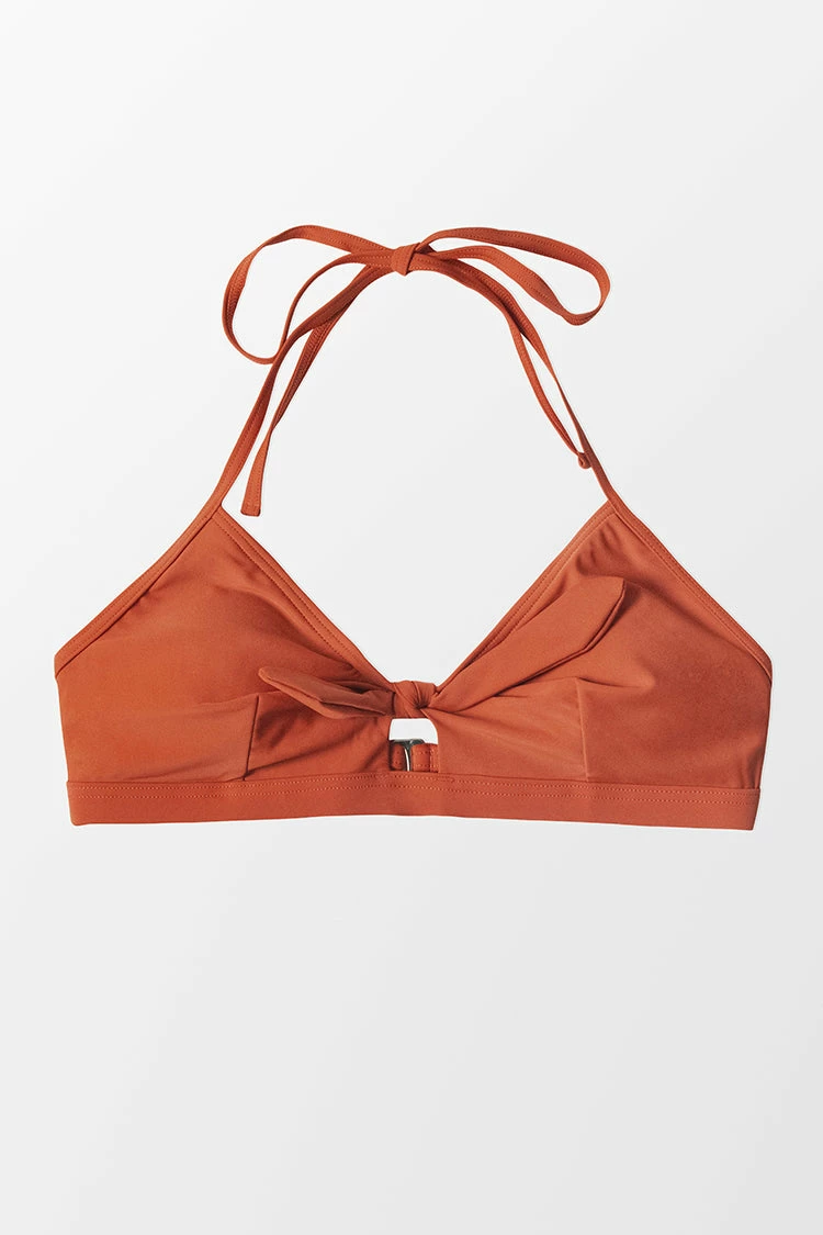 Hit refresh on your swim edit with Meaghan Knot Halter Bikini Top. Featuring knot front and halter tie neck. Wear with our Meaghan Floral High Waisted Bikini Bottom for the ultimate beach look.