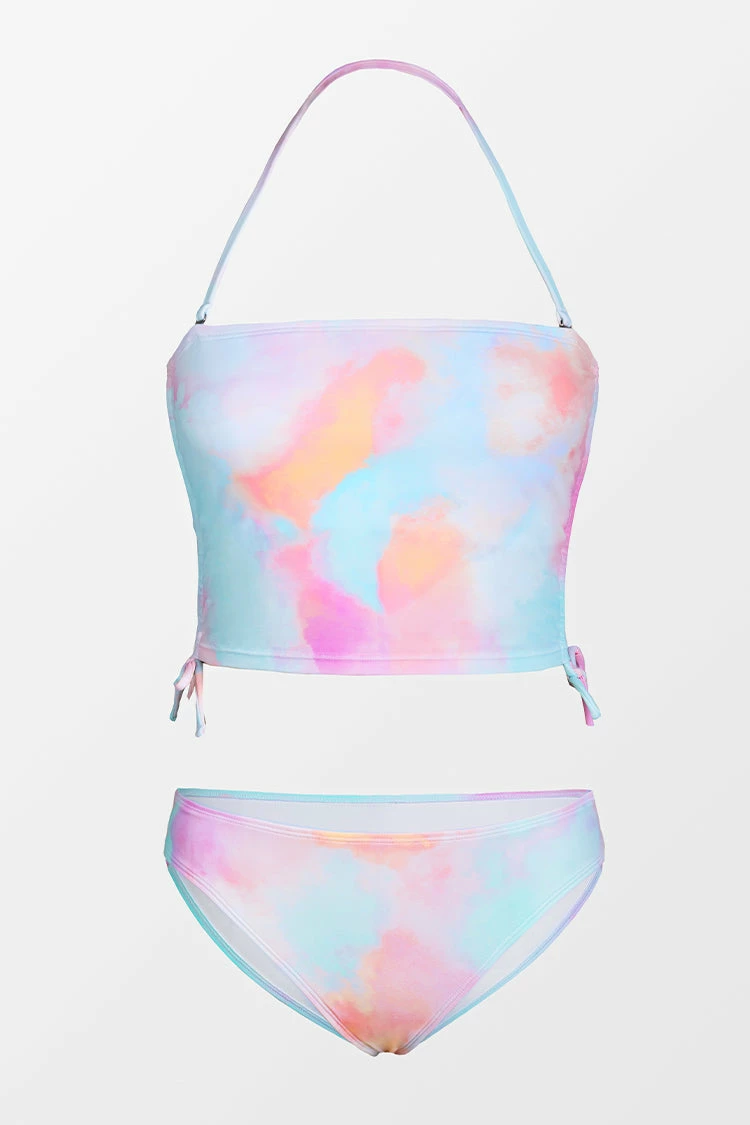 Feel in your element in our Wendy Tie Dye Halter Side Tie Bikini! The top has a halter design, drawstring side tie details, and a ruched bodice.