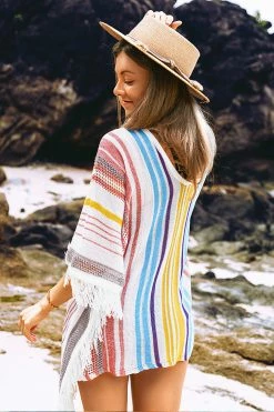 Wholesale π Cupshe Colorful Vertical Stripes Square Cover Up with Tassels π