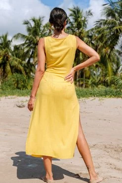 Budget 🔥 Cupshe Zaniyah Yellow Tie Waist V-neck Cover Up 👗 Dress 👍