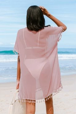 Wholesale π€© Cupshe Tinsley Pink V-neck Tassel Split Cover Up π