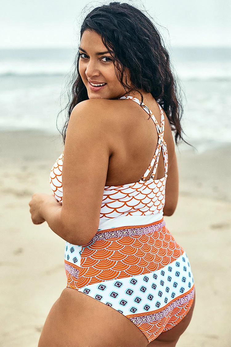 Go and feel the sea with ourΒ Fish Scales Printed Plus Size One Piece Swimsuit. This fish scales pattern adds whole lot fun for it.Β