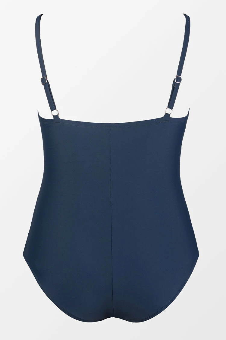 The one-piece swimsuit gives a flattering look thanks to the wrap-front and ruching details that provide a contoured fit.
