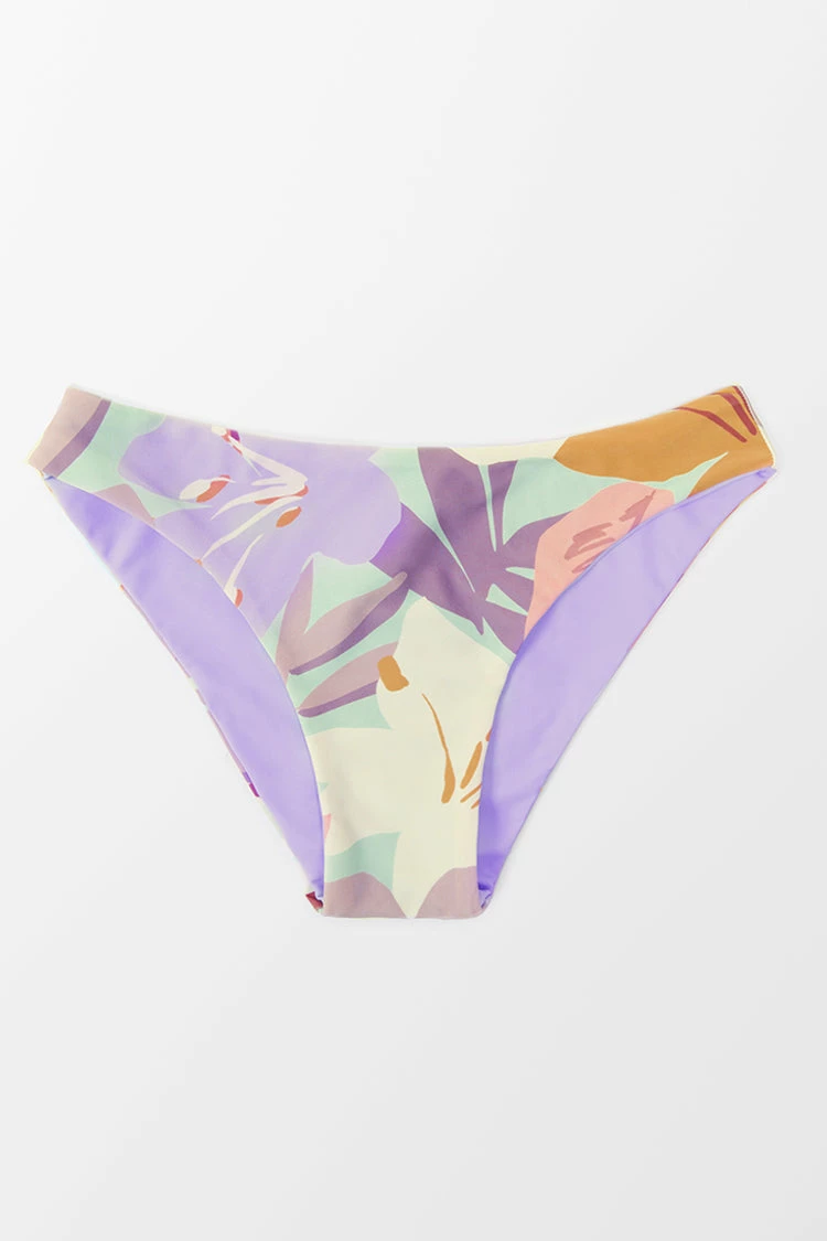 Enjoy the beach in our Tanya Floral Reversible Bikini Bottom! Reversible bottom has floral print and theΒ solid purple side. Matching it with Tanya Floral Drawstring Bandeau Bikini Top.
