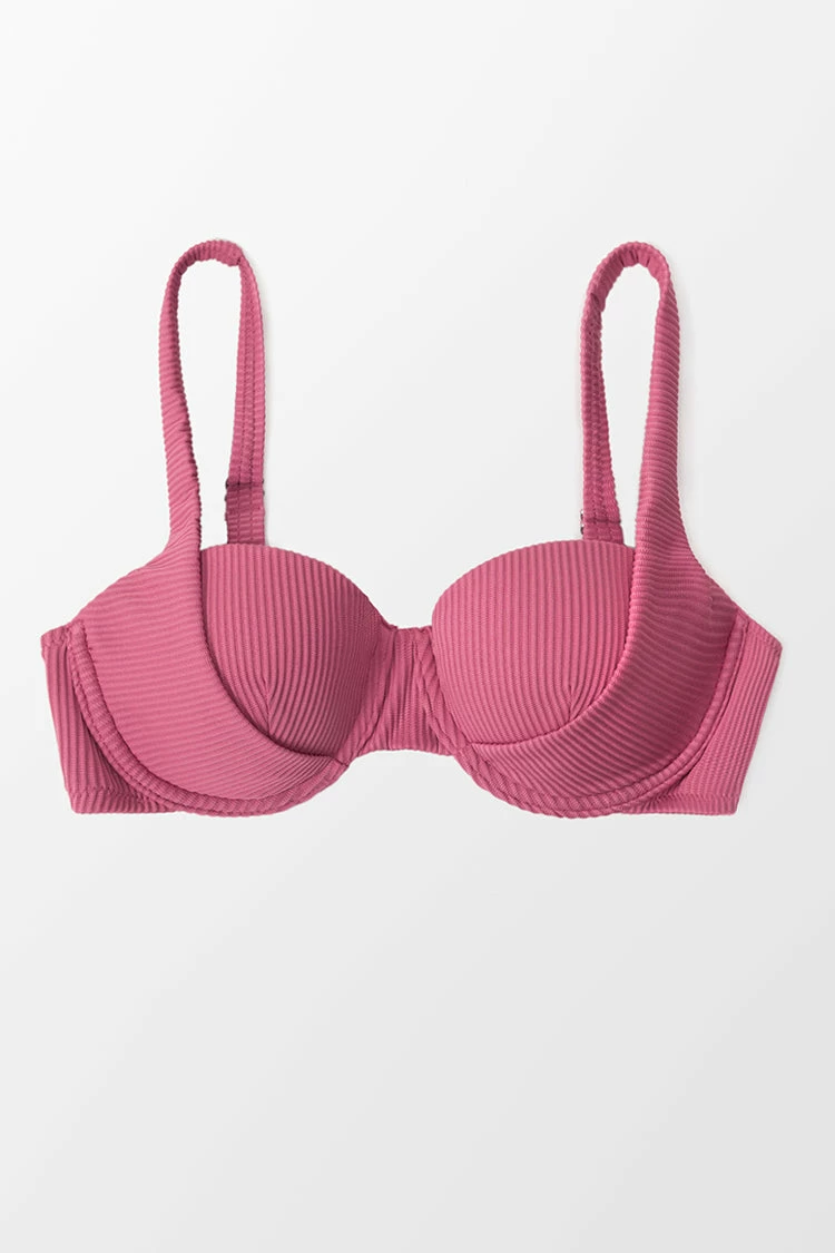 Get ready to slay in the sun with Carson Rib Underwire Bikini Top. The underwired design will keep you supported while looking cute! Wide adjustable straps and back hook closure for the perfect fit.