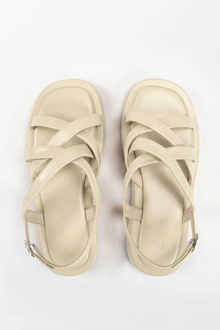 Our Vineyards Crisscross Strap Ankle Buckle Sandals with flat heel design. Adjustable ankle buckle design with cushioned footbed for a comfot fit. Open-toe design offers easy wear. So cool sandals featured in a flatform-style with crisscross strappy detailing.