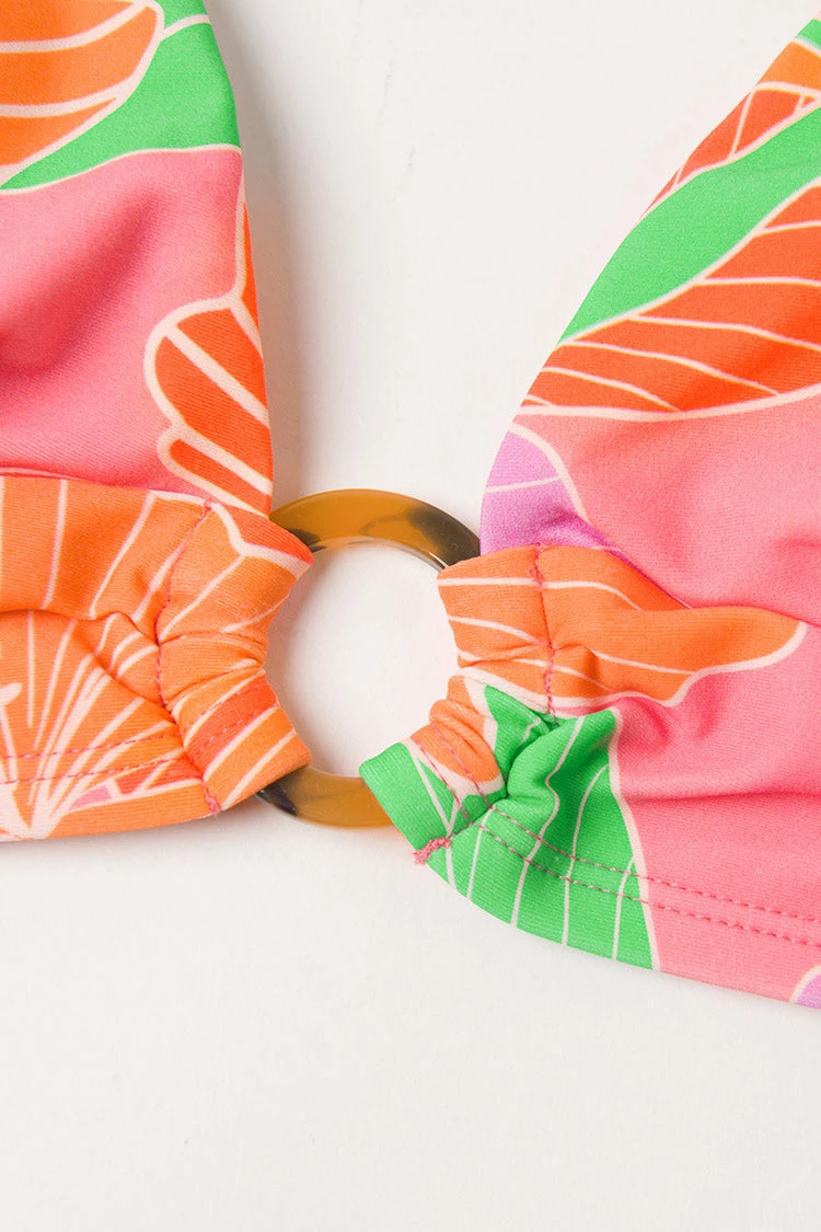 From hitting the beach to sipping a cool drink poolside, the Floral Impressions Halter and High Waist Plus Size Bikini Set is a beach day must-have. The center o-ring and the wide halter straps enhance and boost your bust shape. The matching bikini bottom has a high waist silhouette and a banded waist for a tummy-toning effect.