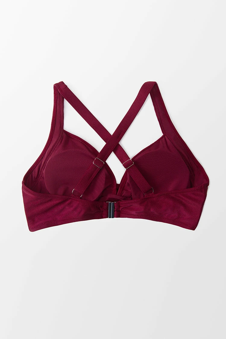 Our Saige Crisscross Twist Plus Size Bikini Top makes a forever timeless top to wear all summer long. Features a twist front with adjustable criss cross back straps. Wide straps for added support and comfort. Back hook closure. Complete the look with our Saige Ruched High Waisted Plus Size Bikini Bottom.